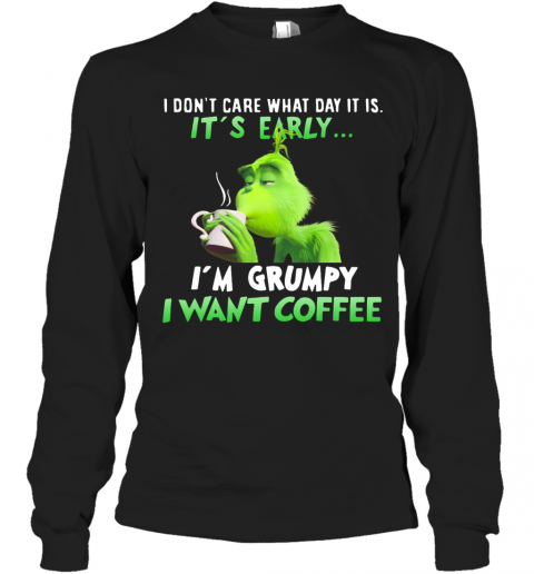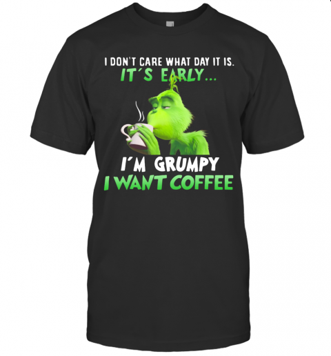 Grinch I Dont Care What Day It Is Its Early Im Grumpy I Want Coffee T-Shirt, hoodie, sweater, longsleeve and ladies t-shirt