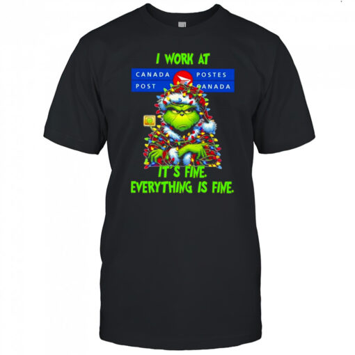 Grinch i work at Canada Post logo it’s fine everything is fine shirt, hoodie, sweater, longsleeve and ladies t-shirt