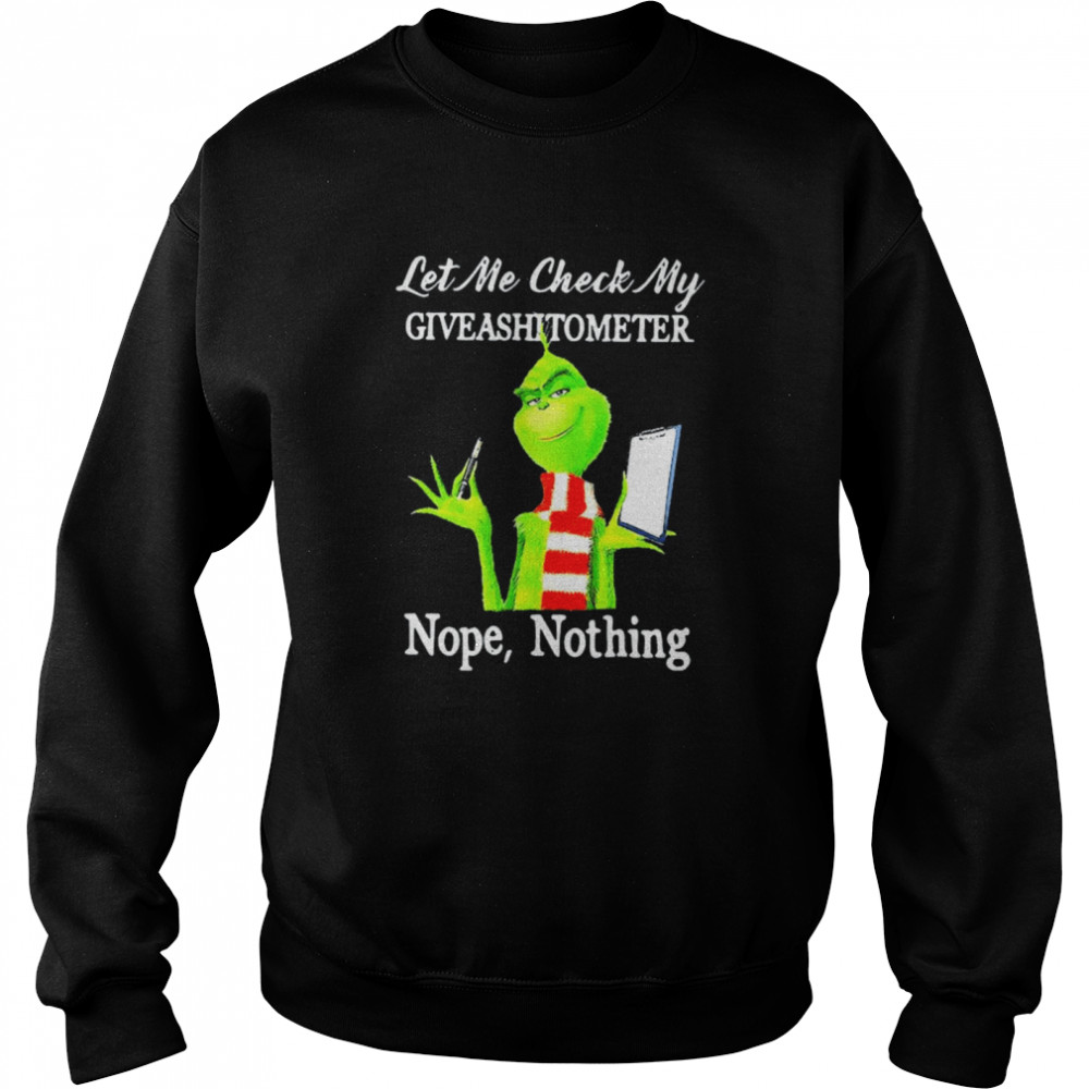 Grinch Let Me Check My Giveashitometer Nope Nothing shirt, hoodie, sweater, longsleeve and ladies t-shirt