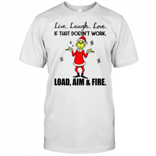 Grinch live laugh love if that doesn’t work load aim and fire Christmas shirt, hoodie, sweater, longsleeve and ladies t-shirt