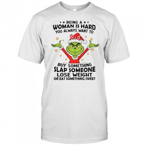 Grinch Santa being a woman is hard you always want to buy something slap someone lose weight shirt, hoodie, sweater, longsleeve and ladies t-shirt