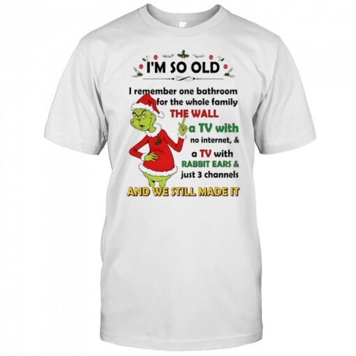 Grinch Santa i’m so old i remember one bathroom for the whole family the wall and we still made it shirt, hoodie, sweater, longsleeve and ladies t-shirt