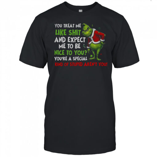 Grinch you treat me like shit and expect me to be nice to you you’re a special kind of stupid aren’t you Christmas shirt, hoodie, sweater, longsleeve and ladies t-shirt