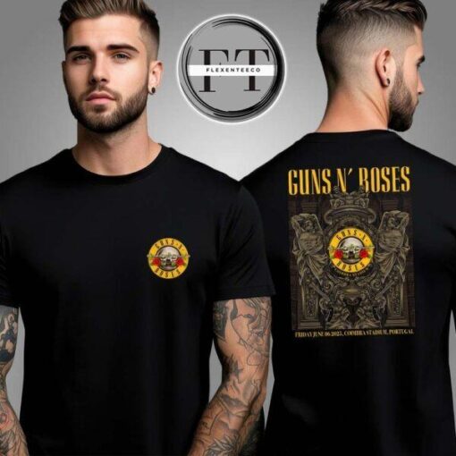 Gear up for the concert of a lifetime with the Gun N Roses At Coimbra Stadium Portugal On Friday June 6 2025 Two Sided Unisex T-Shirt. Embrace the rock ‘n’ roll spirit and make a bold fashion statement that resonates with your inner music lover. Don’t miss out on this exclusive opportunity to own a piece of rock history. Get your hands on this limited-edition t-shirt today and be concert-ready in style. Let your outfit reflect your passion for music and your enthusiasm for live performances. Elevate your concert experience with this iconic t-shirt and rock on with Gun N Roses in Coimbra!