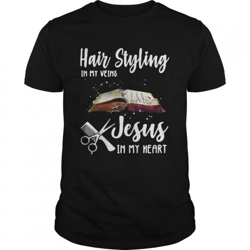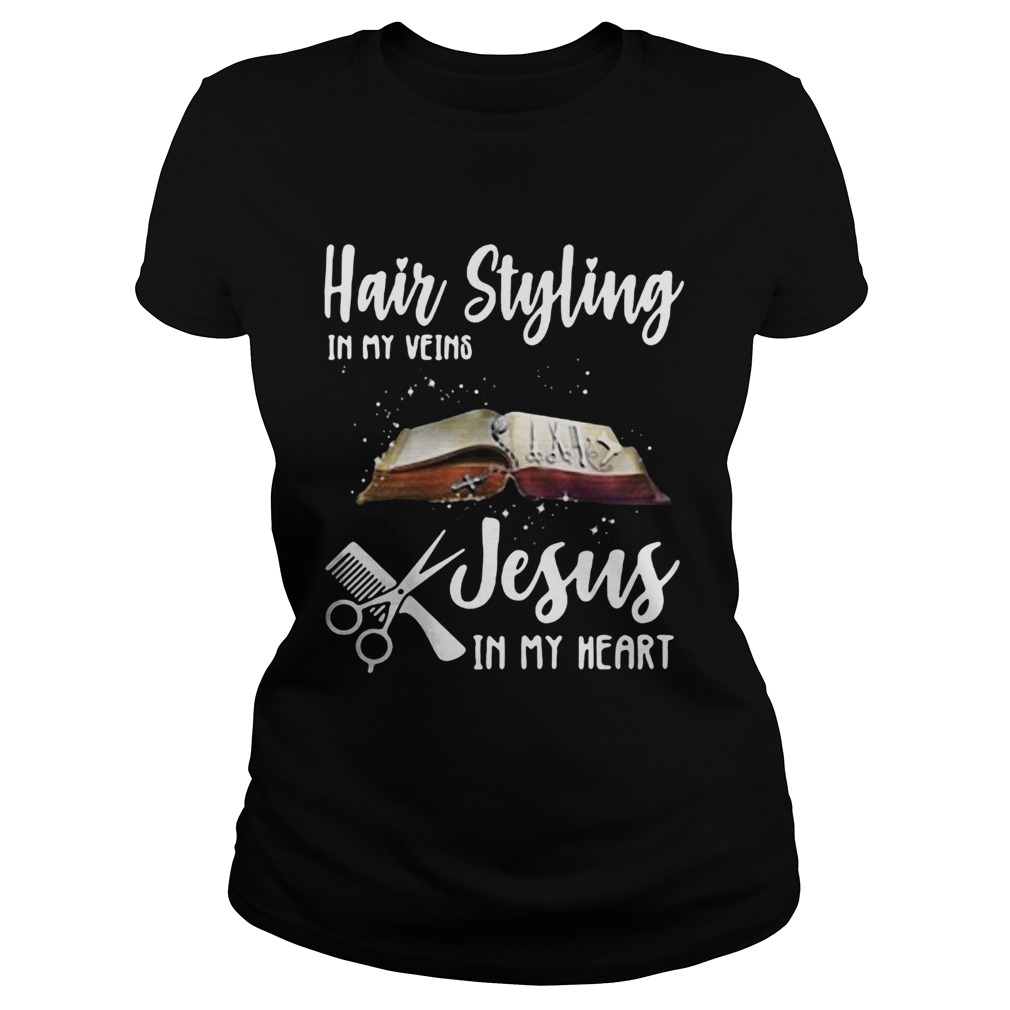 Hair styling in my veins Jesus in me heart shirt, hoodie, sweater, longsleeve and ladies t-shirt