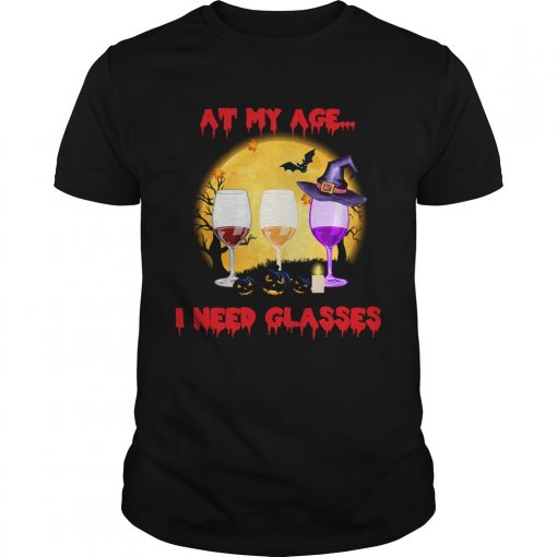 Is oil-based so cleaning Halloween At My Age I Need Glasses Wine Lover Gift TShirt . it will require chemicals. If you’re environmentally friendly, you will tend to avoid.Despite that aspect, it is definitely the most popular and it can be printed on both black or white colored shirts. Keep in mind that anything printed over a white base will pop and shine a little bit more. Also, consider that each color is adding extra cost. So the more colors you choose for a t shirt design, the more expensive gets.