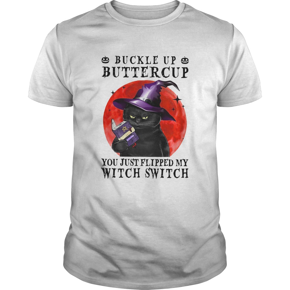 Halloween Cat Buckle Up Buttercup You Just Flipped My Witch Switch shirt, hoodie, sweater, longsleeve and ladies t-shirt