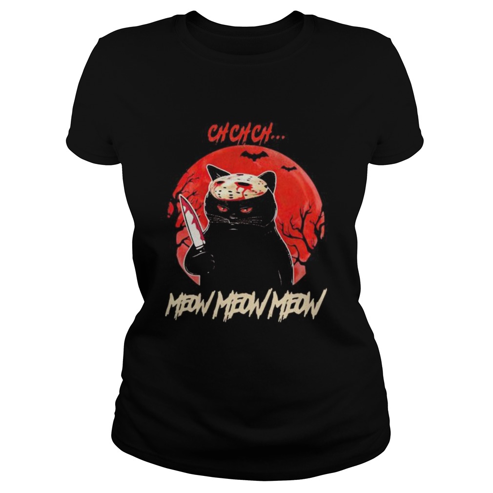 Halloween cat jason voorhees ch ch ch meow meow meow sunset shirt, hoodie, sweater, longsleeve and ladies t-shirt