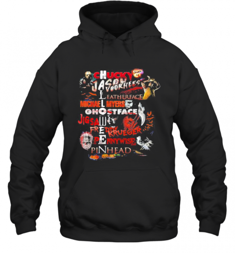 Halloween Chucky Jason Voorhees Leatherface Michael Myers Ghostface Jigsaw Freddy Krueger Pennywise Pinhead T-Shirt, hoodie, sweater, longsleeve and ladies t-shirt