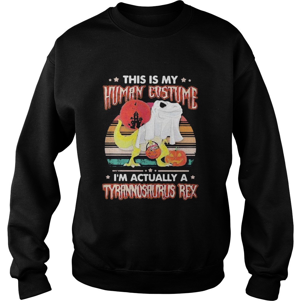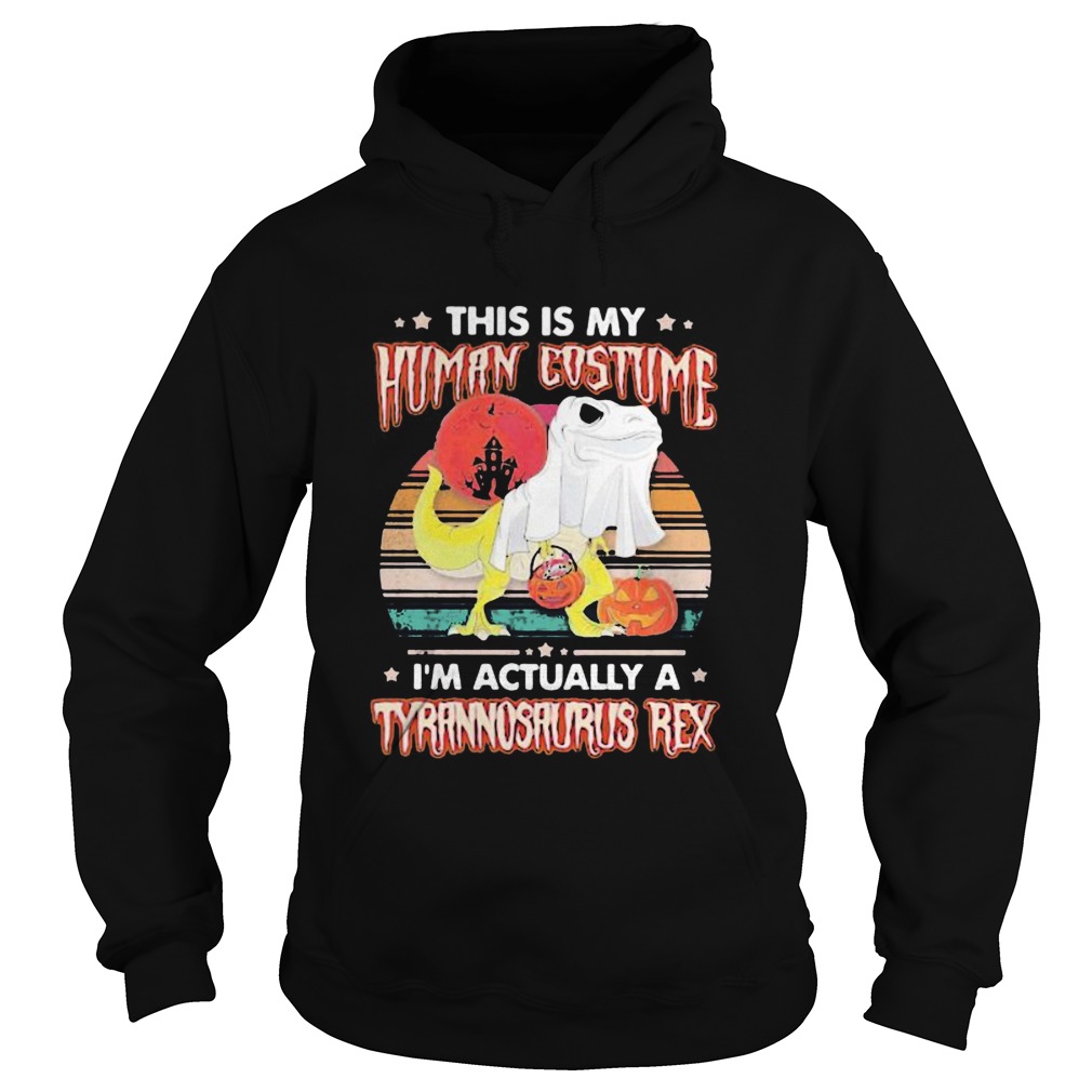 Halloween Dinosaur ghost This is human costume Im actually a tyrannosaurus rex sunset vintage retr, hoodie, sweater, longsleeve and ladies t-shirt