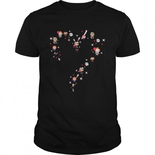Halloween horror characters chibi heart shirt, hoodie, sweater, longsleeve and ladies t-shirt