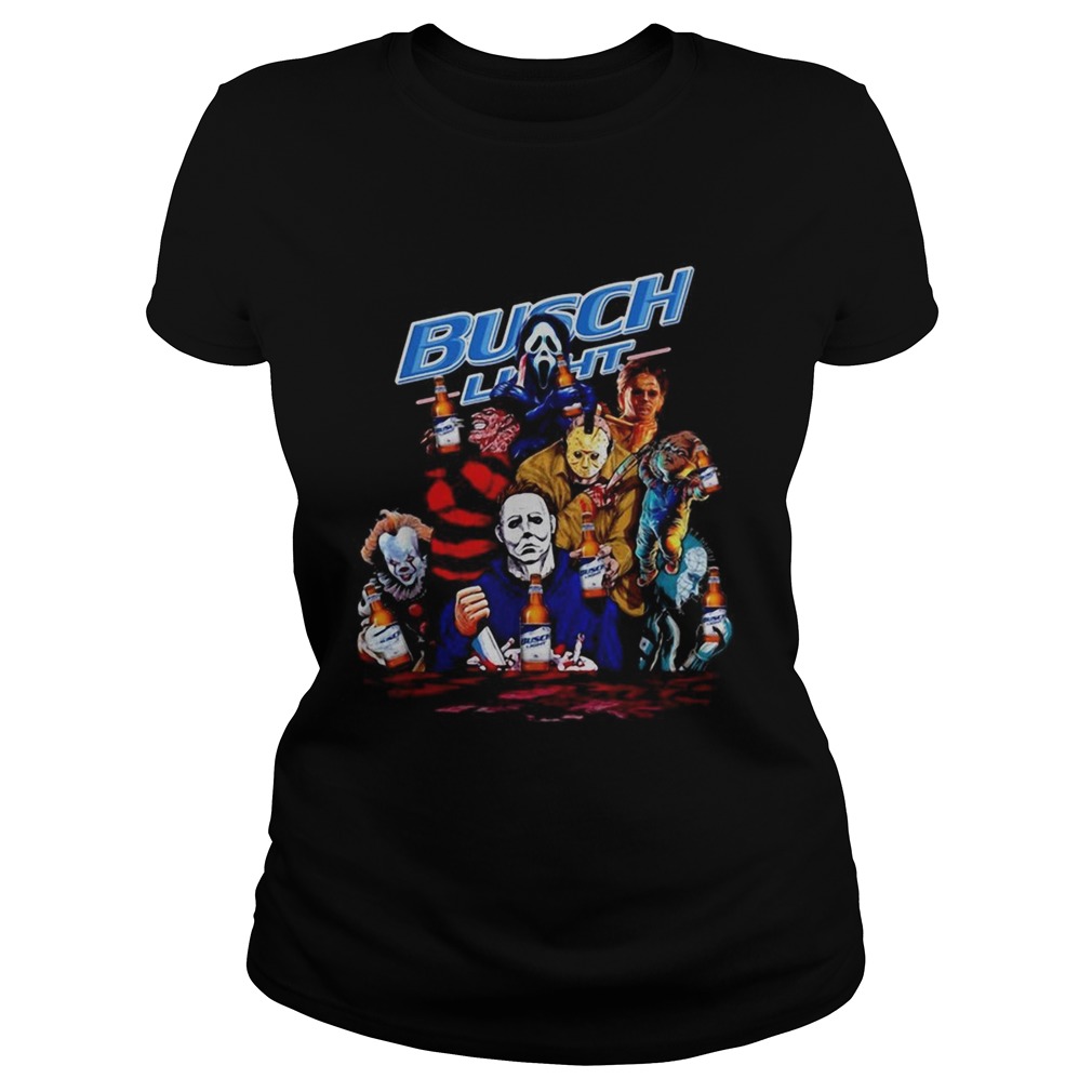 Halloween Horror Characters drinking Busch Light shirt, hoodie, sweater, longsleeve and ladies t-shirt