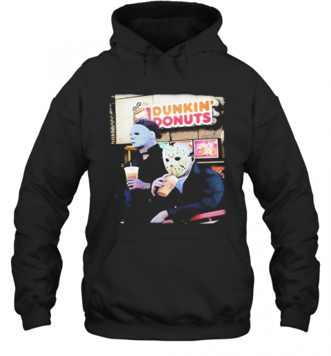 Halloween Horror Characters Drinking Dunkin Donuts T-Shirt, hoodie, sweater, longsleeve and ladies t-shirt