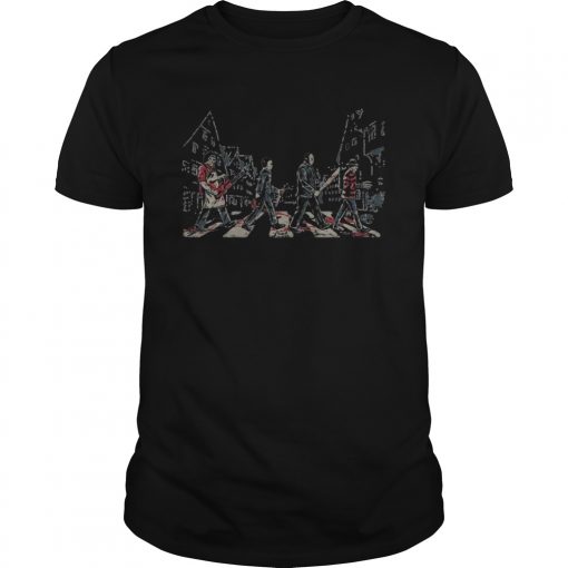 Halloween horror characters guitar abbey road shirt, hoodie, sweater, longsleeve and ladies t-shirt