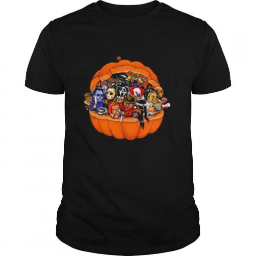(Hoodie Tee)Those are all emotions refugees face daily, says Aden Halloween horror characters pumpkin shirt. My ultimate hope is that we all recognize that we’re human at the end of the day. This project is about spotlighting health care professionals, but so many groups are banding together to fight this. I’m so grateful the real heroes are finally getting the attention they deserve. The era of nostalgia is still going strong. Take a look from earlier this week when Kylie Jenner took a moment to tell the world that she was “pretty good at this makeup thing, and wore something that vaguely matched her pink eyeshadow: an archival Jean Paul Gaultier dress. The piece hails from around Jean Paul Gaultier’s “Mad Max” collection from Fall 1995. Jenner’s version includes a snake across its front and Gaultier’s signature cyberdot print on the arms. The rare item was on sale on the e-commerce site elcycervintage.com, but alas, it has been sold. Did Kylie buy it? The world may never know. Also in the news of the Instagram-verse: Lady Gaga rolled up in a large truck wearing a pink mask with spikes to match her fuchsia dyed hair. The bright and bold stunt was to promote her new album “Chromatica.” Her caption? “delivering #Chromatica myself to every retailer around the world… in Chromatica time and distance do not exist.” Only in Gaga’s world.