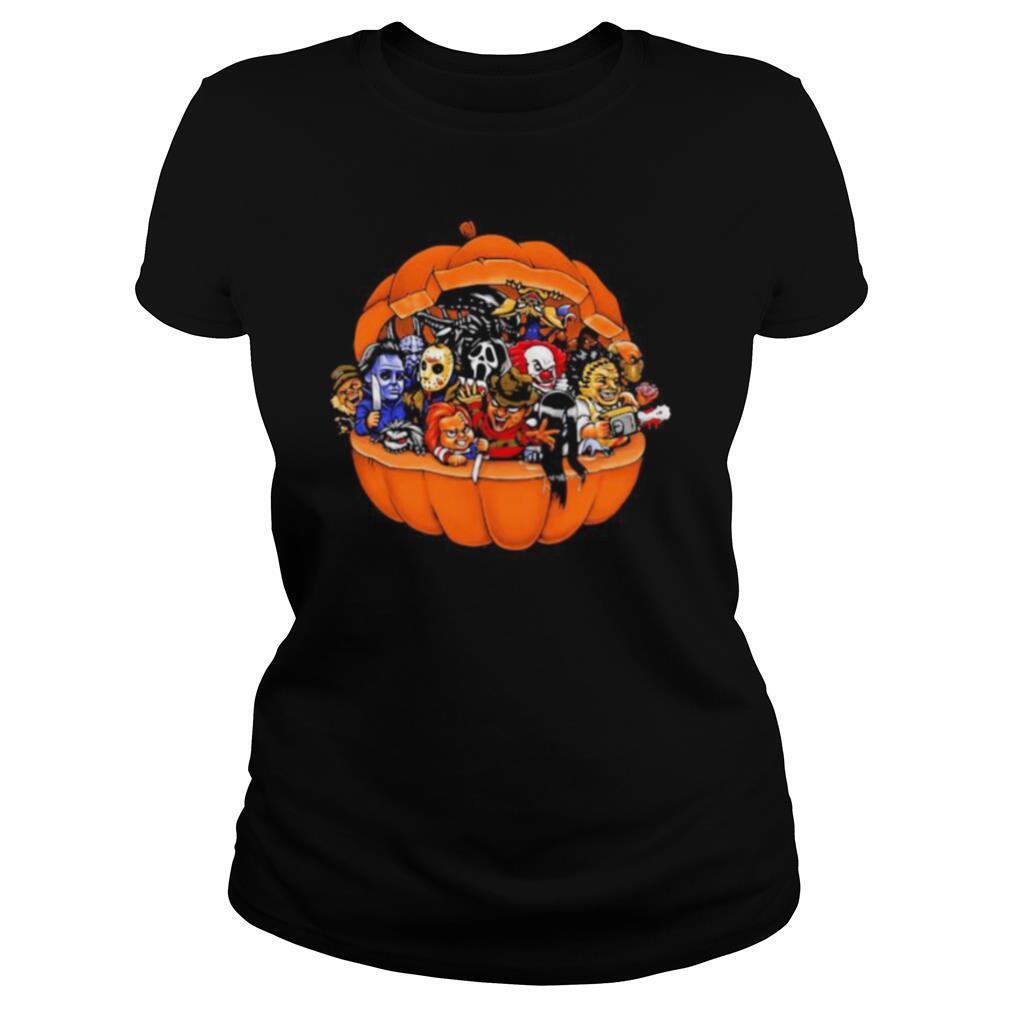 Halloween horror characters pumpkin shirt, hoodie, sweater, longsleeve and ladies t-shirt