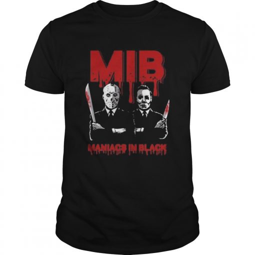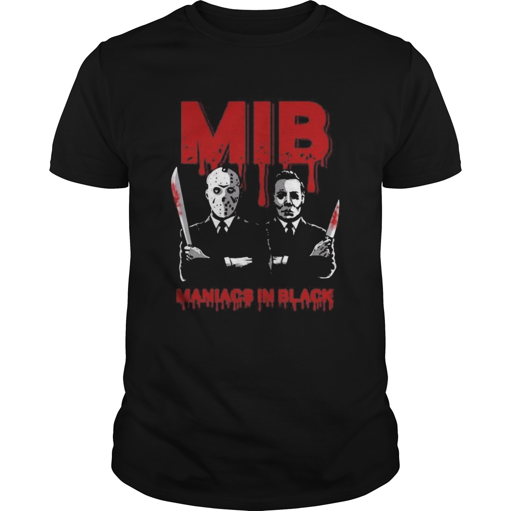 Halloween jason voorhees and freddy krueger mib maniacs in black shirt, hoodie, sweater, longsleeve and ladies t-shirt