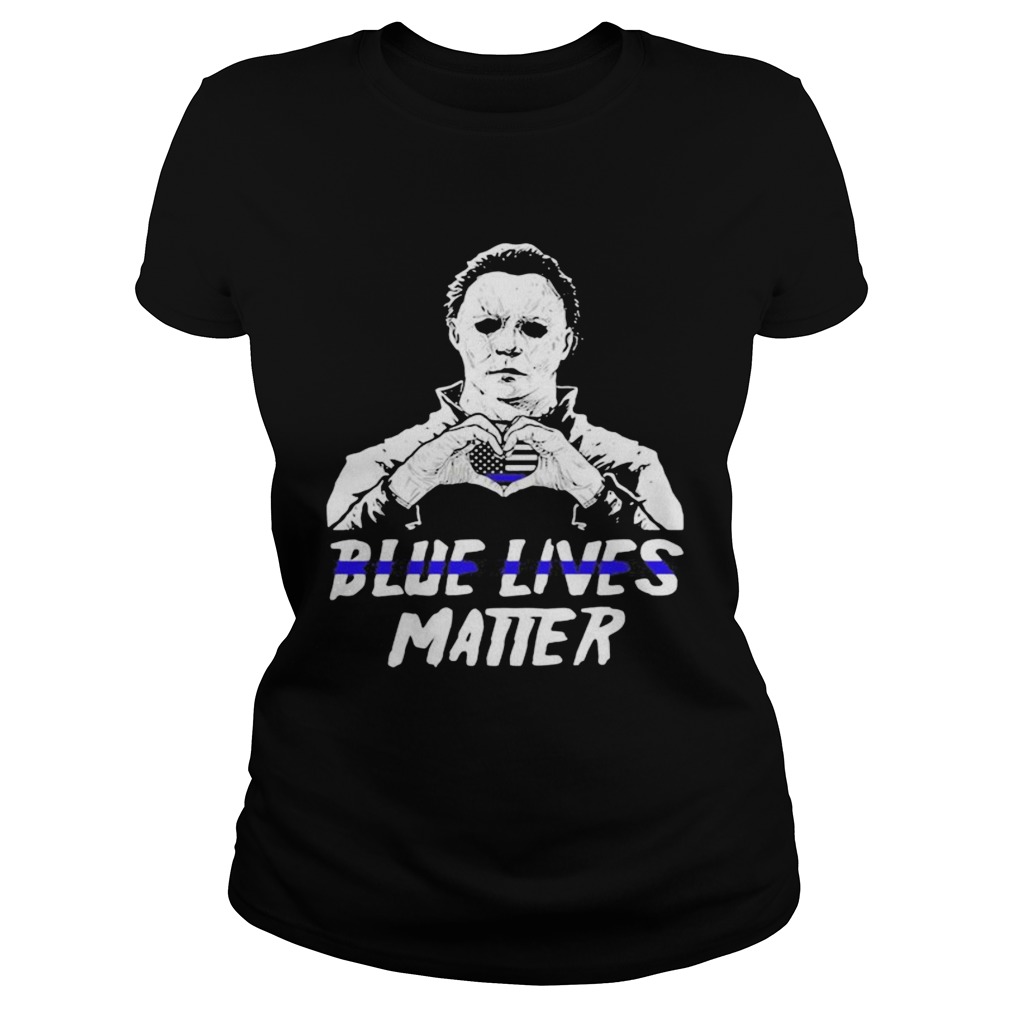 Halloween michael myers blue lives matter american flag independence day shirt, hoodie, sweater, longsleeve and ladies t-shirt