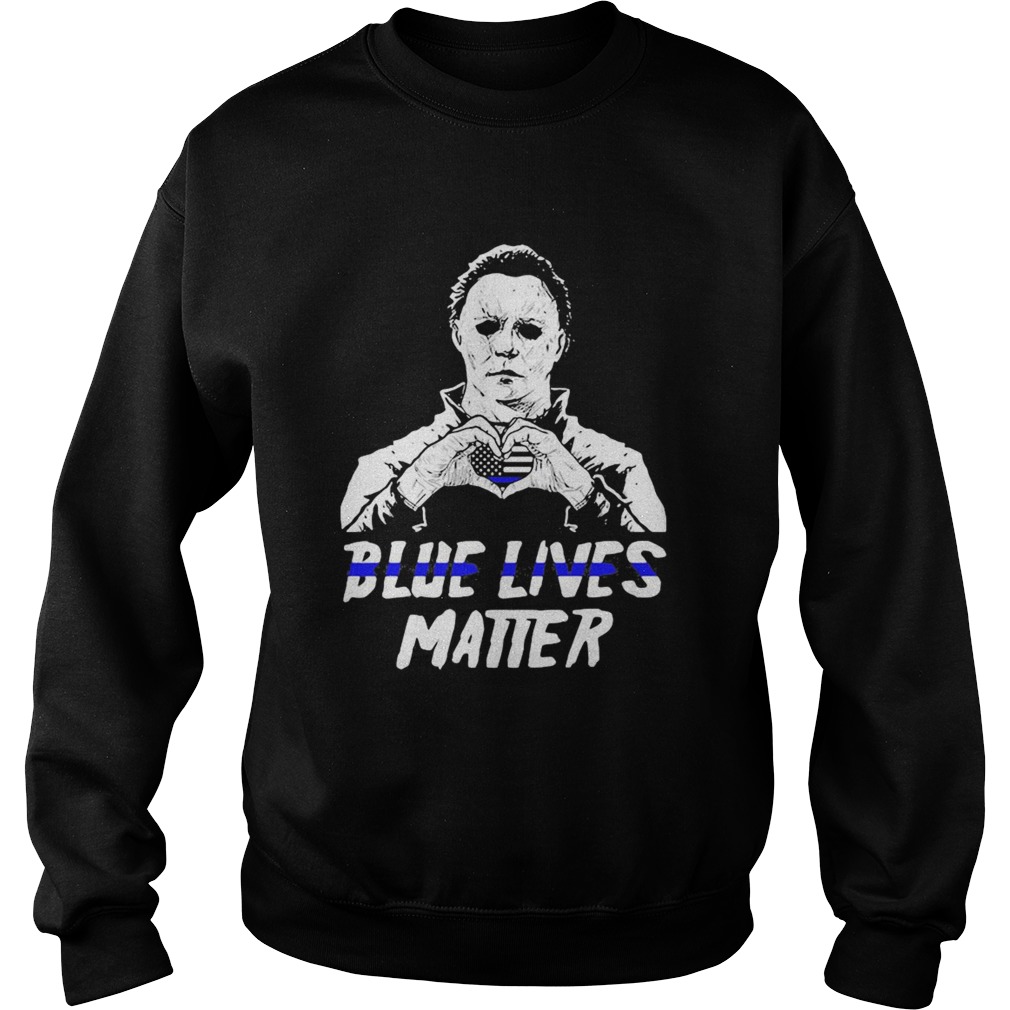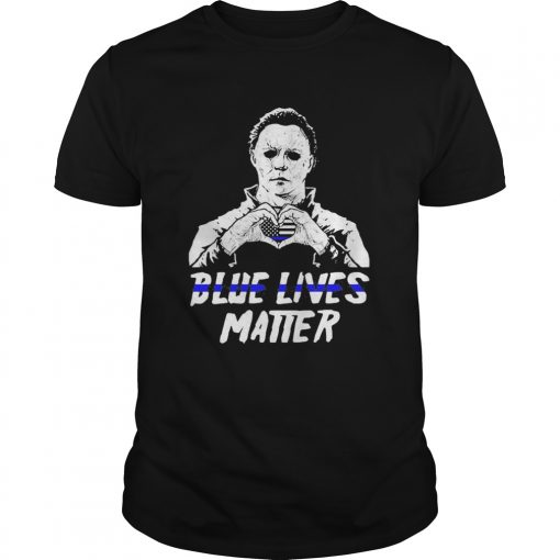 Halloween michael myers blue lives matter heart american flag independence day shirt, hoodie, sweater, longsleeve and ladies t-shirt