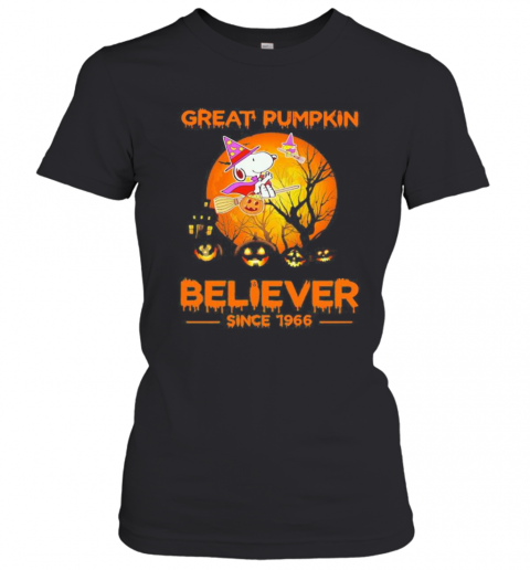 Halloween Snoopy And Woodstock Witch Great Pumpkin Believer Since 1966 Moon T-Shirt, hoodie, sweater, longsleeve and ladies t-shirt