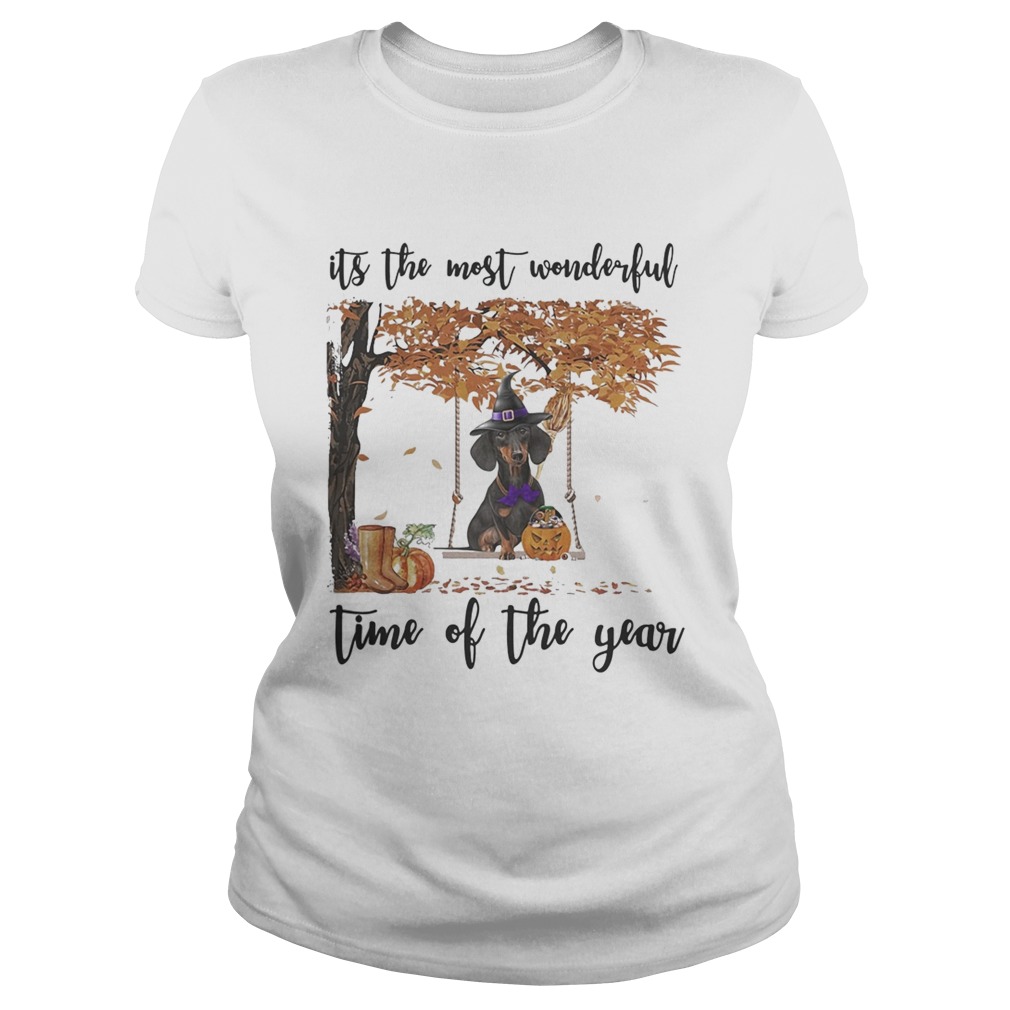 Halloween witch dachshund its the most wonderful time of the year leaves tree shirt, hoodie, sweater, longsleeve and ladies t-shirt