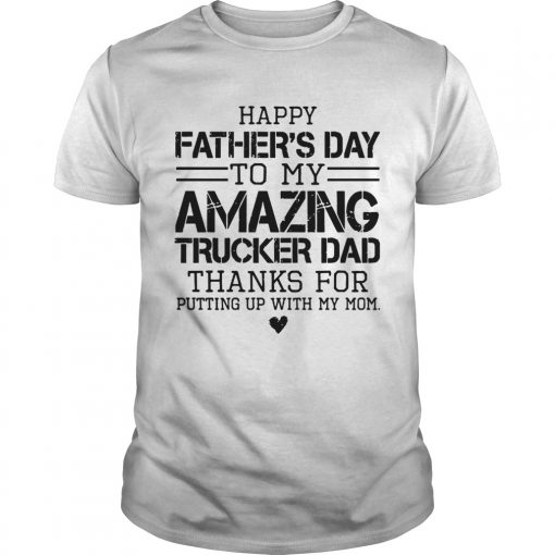Happy Fathers Day To My Amazing Trucker Dad Thanks For Putting Up With My Mom shirt, hoodie, sweater, longsleeve and ladies t-shirt
