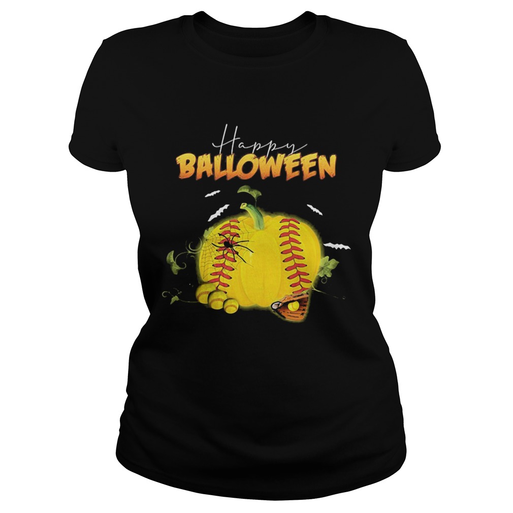 Happy halloween balloween softball pumpkin shirt, hoodie, sweater, longsleeve and ladies t-shirt
