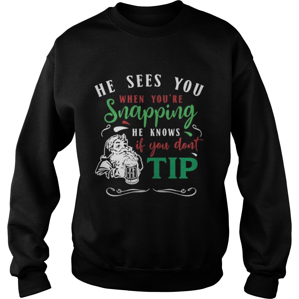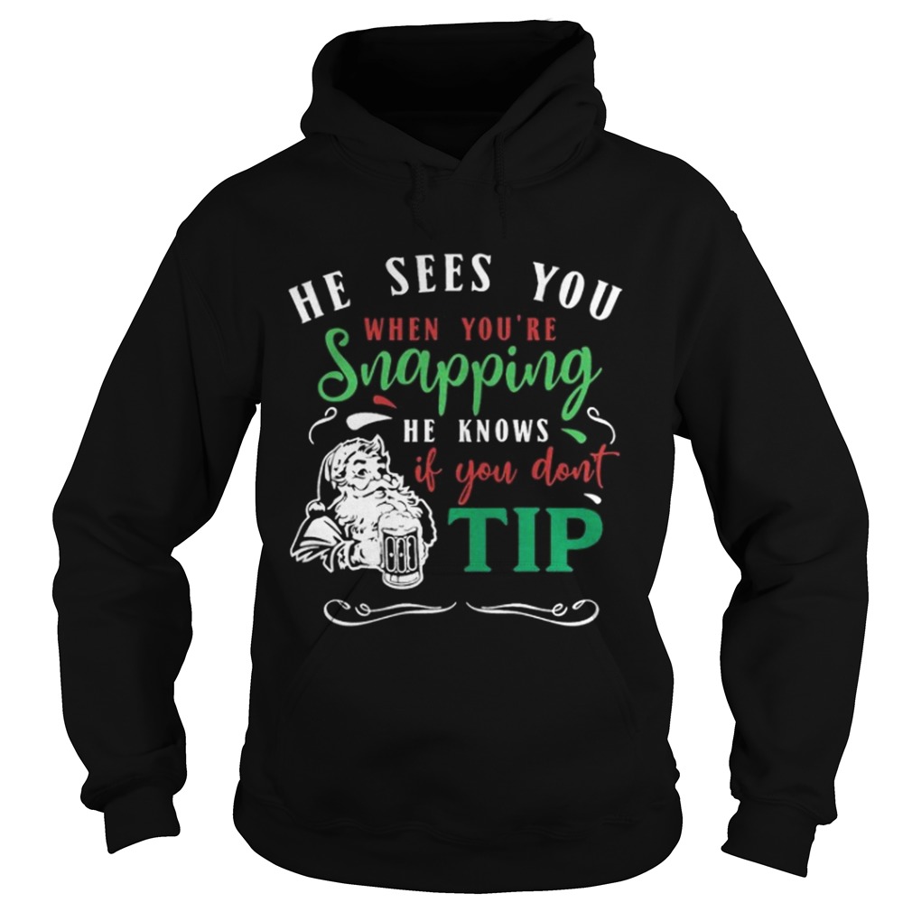He sees you when you’re snapping he knows if you dont tip santa hoodie, sweater