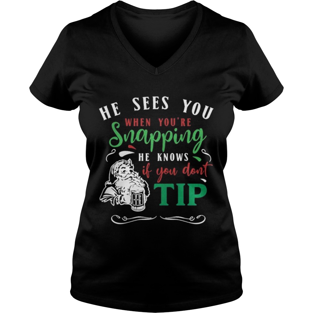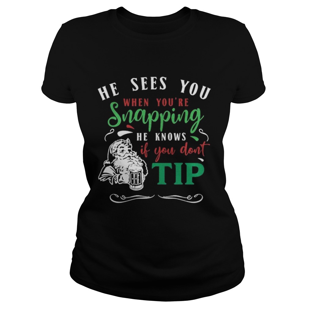 He sees you when you’re snapping he knows if you dont tip santa shirt
