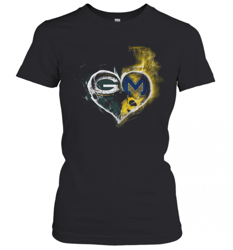 Heart Green Bay Packers And Michigan Wolverines Football T-Shirt, hoodie, sweater, longsleeve and ladies t-shirt