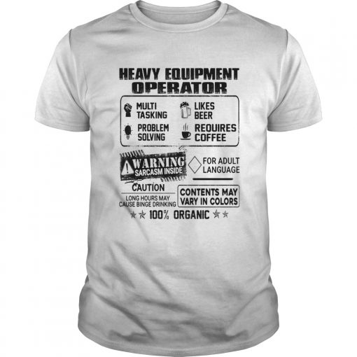 Heavy equipment operator warning sarcasm inside caution contents may vary in color 100 percent orga, hoodie, sweater, longsleeve and ladies t-shirt