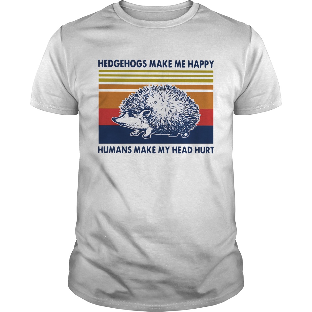 T-shirts are a walking billboard Hedgehogs Make Me Happy Humans Make My Head Hurt Vintage shirt . Whether you’re making a fashion statement, fostering corporate culture, expressing what you identify with, declaring your love for someone or promoting your brand, never go out of style.Thanks to their versatility and increased popularity, personalized t-shirts embellished with catchy phrases and lively images have gone through a fashion revival. Trendy shops on- and offline stock custom printed t-shirts in a wide array of colors and designs ranging from humorous slogans to inspired t-shirts. T-shirts can be printed via a number of innovative methods such as direct-to-garment printing, silkscreen/screen printing, digital cut-out printing and heat transfer printing. No matter the method used for printing, t-shirts provide users with a diversity of benefits and they’re awesome, for simplicity we favor personalized t-shirt printing with pros, but whatever floats your boat! Check out what makes printed tees so cool:For those people looking to start a t-shirt printing business at home, the inexpensive method of heat transfer printing is absolutely perfect.