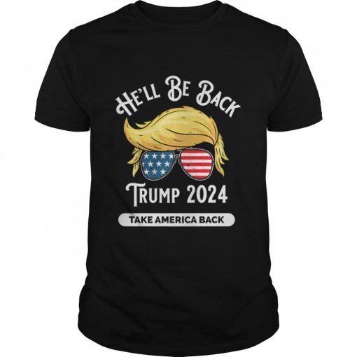 He’ll Be Back Trumo 2024 Take America Back Hair And Glass American Flag shirt, hoodie, sweater, longsleeve and ladies t-shirt