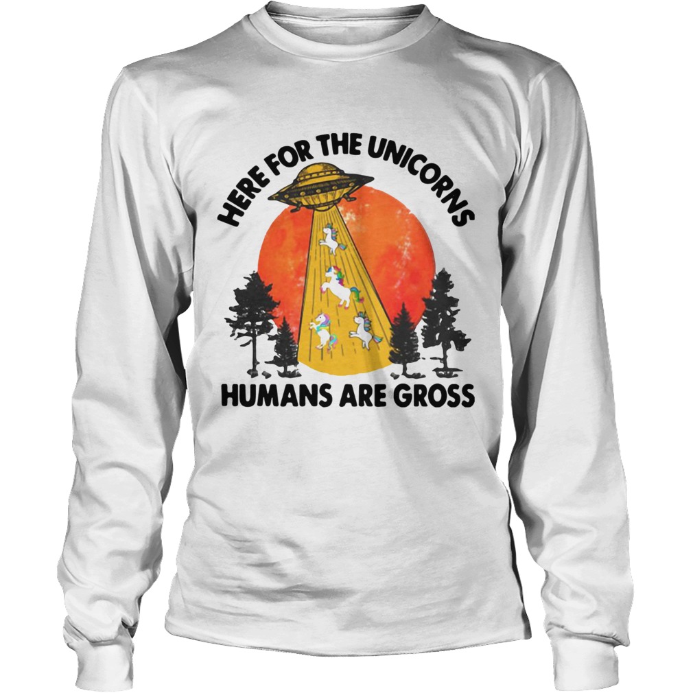 Here For The Unicorns Humans Are Gross shirt, hoodie, sweater, longsleeve and ladies t-shirt