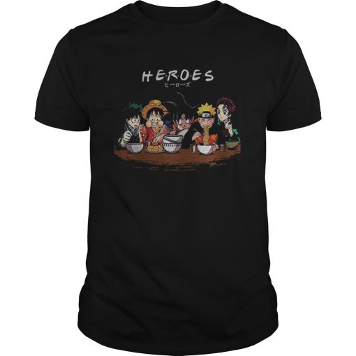 Heroes Friends Naruto Luffy Songoku Tanjirou Kamado shirt, hoodie, sweater, longsleeve and ladies t-shirt