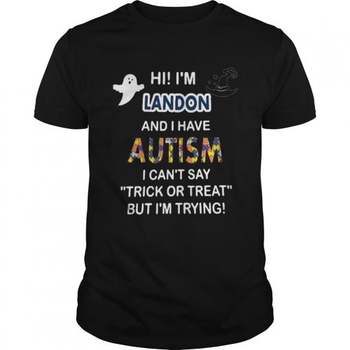 Hi im landon and i have autism i cant say trick or treat but im trying shirt, hoodie, sweater, longsleeve and ladies t-shirt