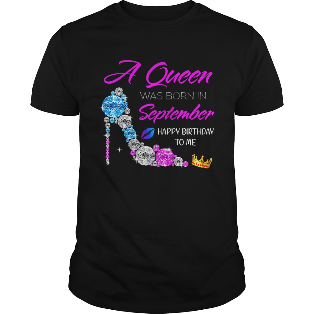 High heels a queen was born in september happy birthday to me diamond shirt, hoodie, sweater, longsleeve and ladies t-shirt