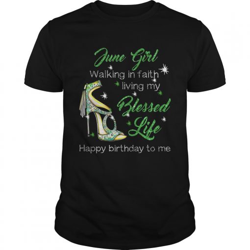 High heels june girl walking in faith living my blessed life happy birthdau to me shirt, hoodie, sweater, longsleeve and ladies t-shirt