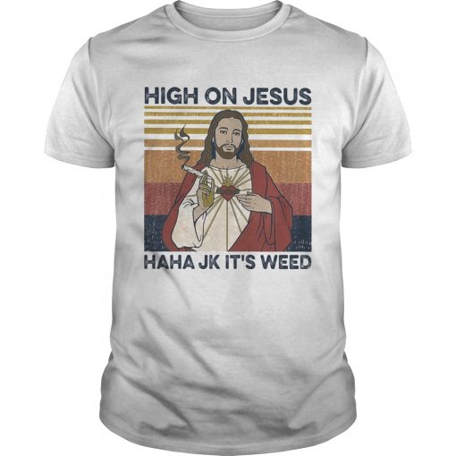 High on jesus haha jk its weed vintage shirt, hoodie, sweater, longsleeve and ladies t-shirt