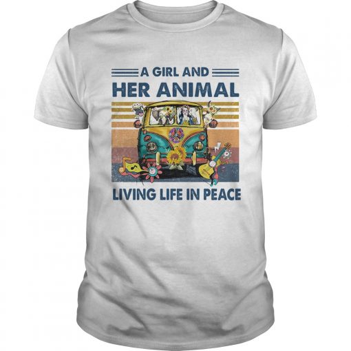Hippie bus a girl and her animal living life in peace vintage retro shirt, hoodie, sweater, longsleeve and ladies t-shirt