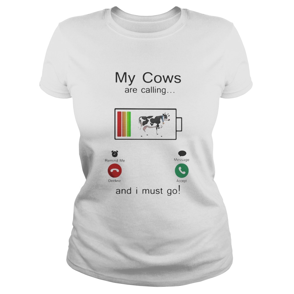 Holstein My cows are calling and i must go out of battery shirt, hoodie, sweater, longsleeve and ladies t-shirt
