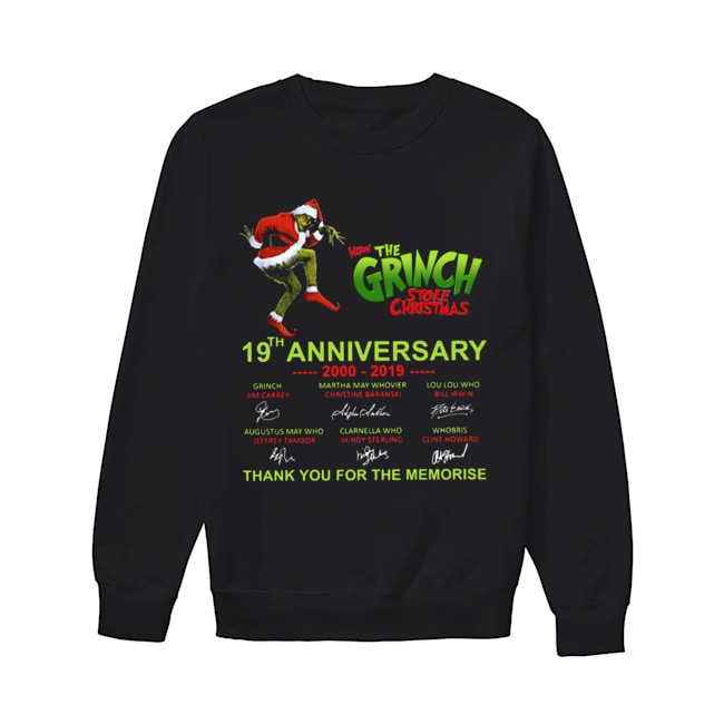 How the Grinch Stole Christmas 19th anniversary thank you for the memories shirt, hoodie, sweater, longsleeve and ladies t-shirt