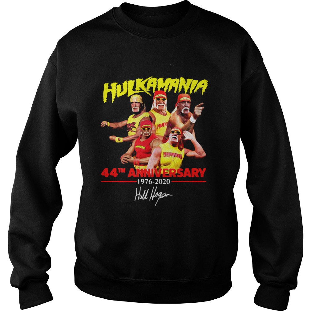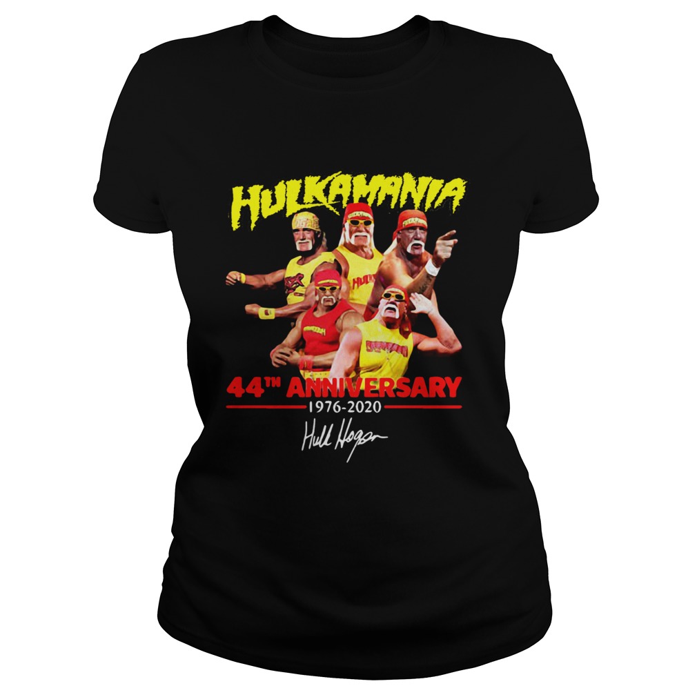 No matter what your day Hulkamania 44th Anniversary 19762020 Signature shirt . has in store, be ready to take it on in chic, comfortable confidence with cvctees. This classic tee will instantly become one of your go-to wardrobe basics — with the soft fabric, you’ll never want to take this tee off. Keep your style as relaxed as you are, and pair this with your favorite jeans and a denim jacket for an easy day out.With a simple and sweet aesthetic, boasts casual elegance at its finest. The combination of a flouncy silhouette with a solid color makes for a look that is both feminine yet crisply modern, while a boat neckline lends a touch of regal style. Batwing sleeves cascade from this high neckline for elegant draping, and center seam completes the piece with subtly contemporary flair.