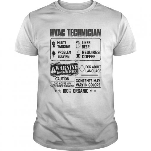 Hvac technician warning sarcasm inside caution contents may vary in color 100 percent organic shirt, hoodie, sweater, longsleeve and ladies t-shirt