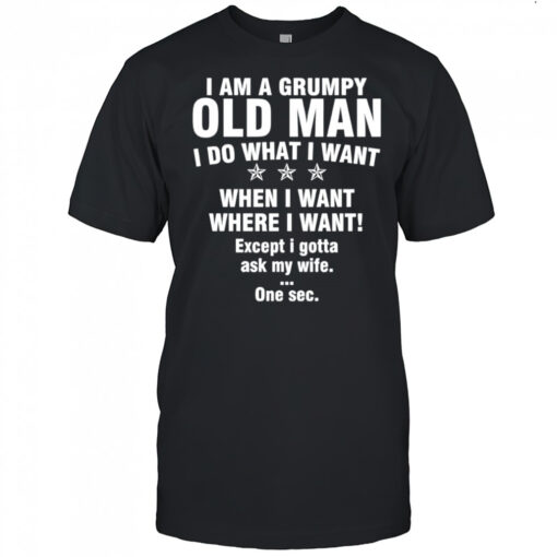 I am a grumpy old man I do what I want when I want where I want Except i gotta ask my wife One sec shirt, hoodie, sweater, longsleeve and ladies t-shirt
