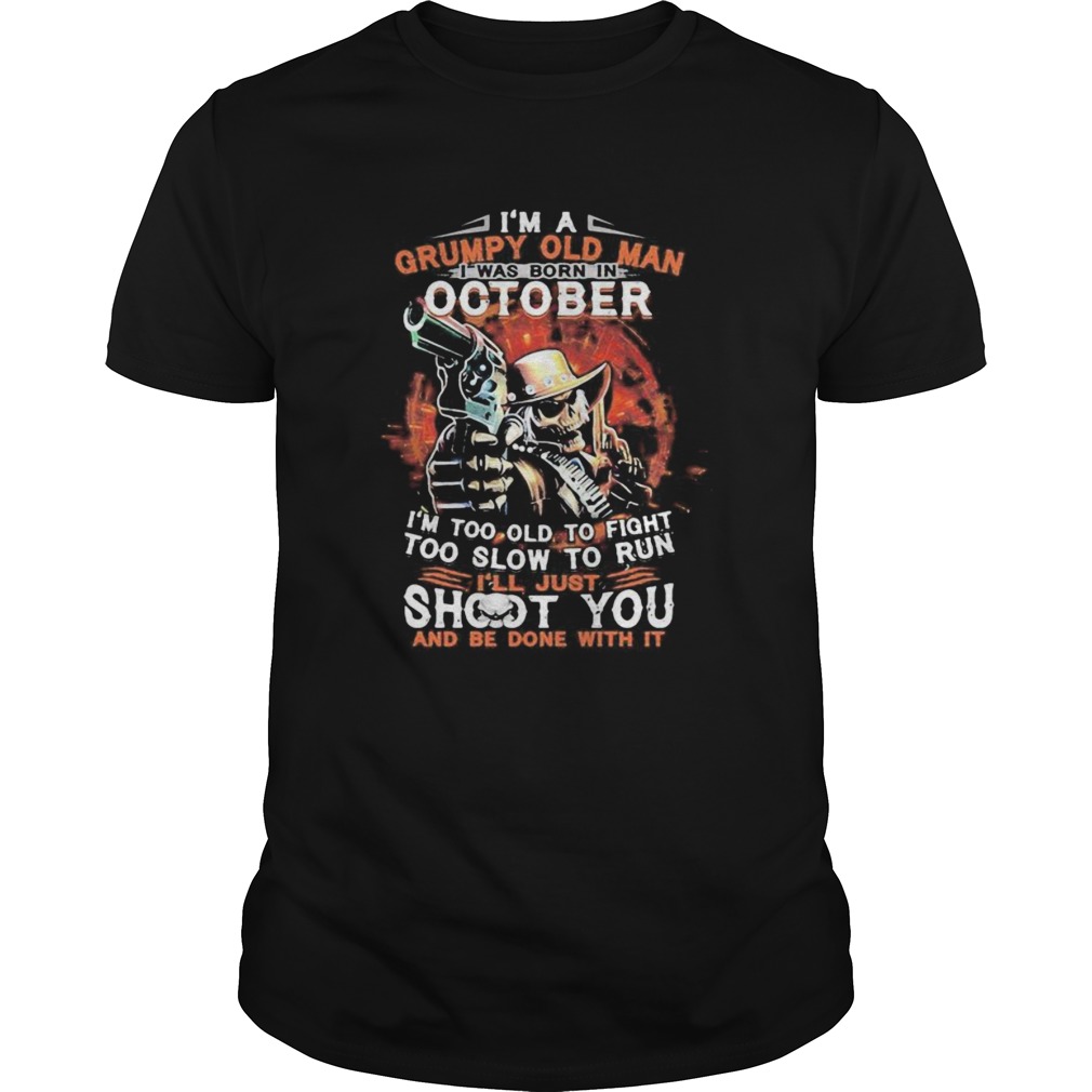 I am a grumpy old man i was born in october im too old to fight too slow to run ill just shoot yo, hoodie, sweater, longsleeve and ladies t-shirt