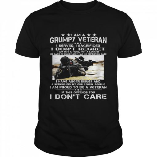 I Am A Grumpy Veteran I Served I Sacrificed I Don’t Regret I Am Not A Hero Not A Legend shirt, hoodie, sweater, longsleeve and ladies t-shirt
