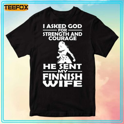 I Asked God For Strength And Courage He Sent My Finnish Wife Unisex T-Shirt, hoodie, sweater, longsleeve and ladies t-shirt