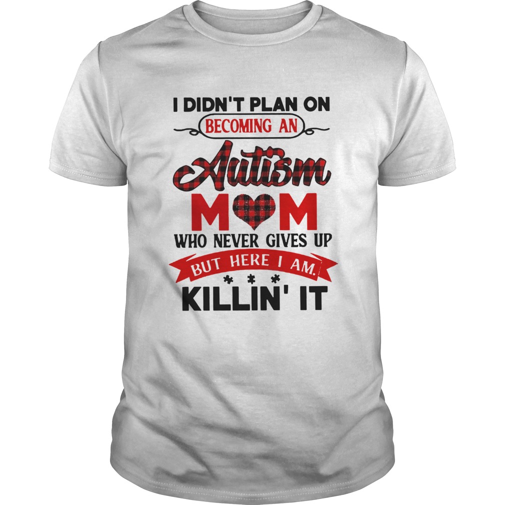 I Didnt Plan On Becoming An Autism Mom Who Never Gives Up But Here I Am Killin It shirt, hoodie, sweater, longsleeve and ladies t-shirt