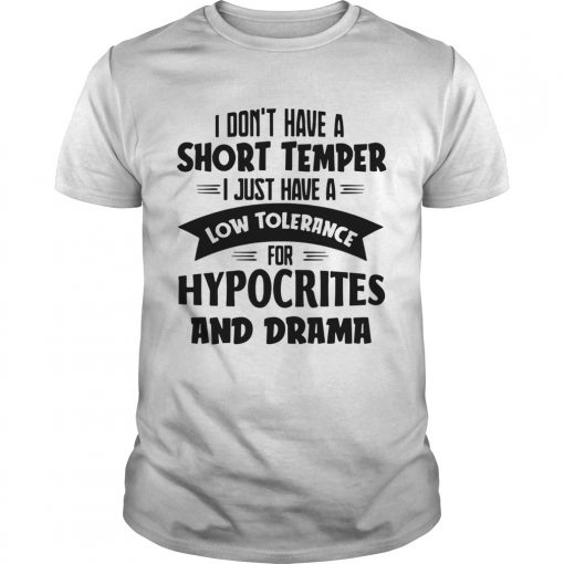 I Dont Have A Short Temper I Just Have A Low Tolerance For Hypocrites And Drama shirt, hoodie, sweater, longsleeve and ladies t-shirt